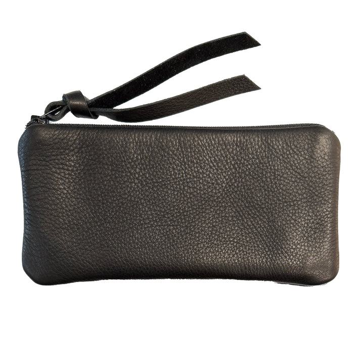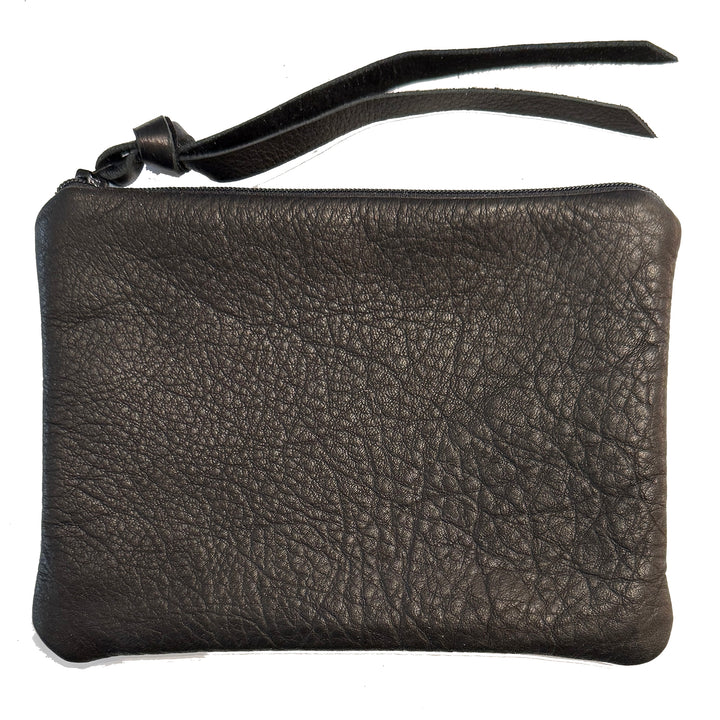 Handmade from a luxurious and supple natural grained leather, these zipper pouches are available in three sizes. The small is 4" x 5", the medium is 3.5" x 7" and the large is 5.5" x 7". All are lined in fantastic contrasting fabric.